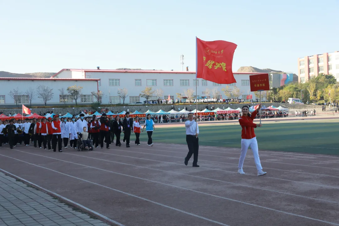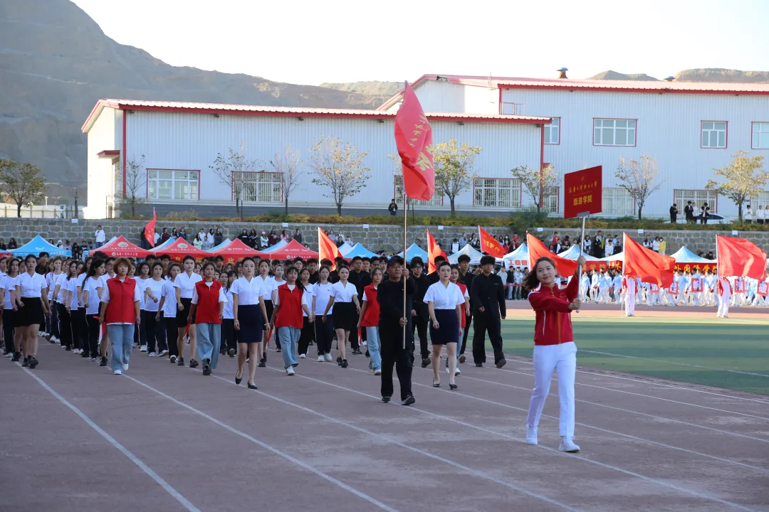 上午10点整,开幕式正式开始。伴随着激昂的音乐,英姿飒爽的国旗方队首先入场,护旗手们迈着铿锵有力的步伐,高擎五星红旗稳步前行,点燃了全场师生的热情。随后各学院方队依次登场,队员们喊着响亮的口号,表演了各具特色的文艺节目,展示出各学院的专业特色,彰显了各族师生朝气蓬勃、奋发向上的青春活力。