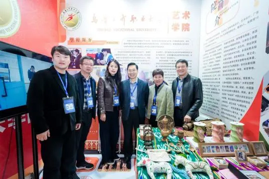 在博览会成果展示区,艺术学院以“产教融合赋能艺术设计教育”为主题搭建展示平台,重点展出了与乌鲁木齐搏得梦大学生创业基地管理有限公司联合研发的新疆特色文创产品。这些产品深度融合新疆地域文化特色与现代设计理念,兼具实用性与艺术性,吸引了众多与会嘉宾驻足观赏、交流咨询,成为展示我校产教融合成果与新疆文化魅力的重要窗口。